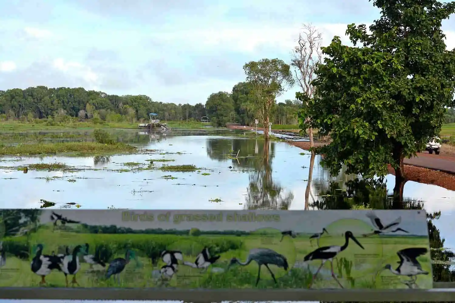The dam is located approximately 68 km to the South East of Darwin. You first drive south on the Stuart Highway before turning off on the Arnhem Highway towards Kakadu. You will drive past the township of Humpty Doo and soon arrive at the turnoff to Fogg Dam (Anzac Parade). You cant miss the turnoff as it is right after the Radio Transmitting Towers and clearly marked. 5 km down Anzac Parade you will turn into Fogg Dam Road. The entire journey is on sealed road and accessible all year round.